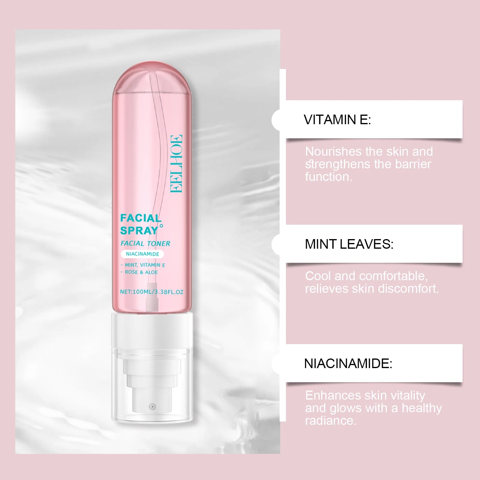 Dopo la detersione, vaporizza su viso e collo a distanza di circa 15–20 cm.