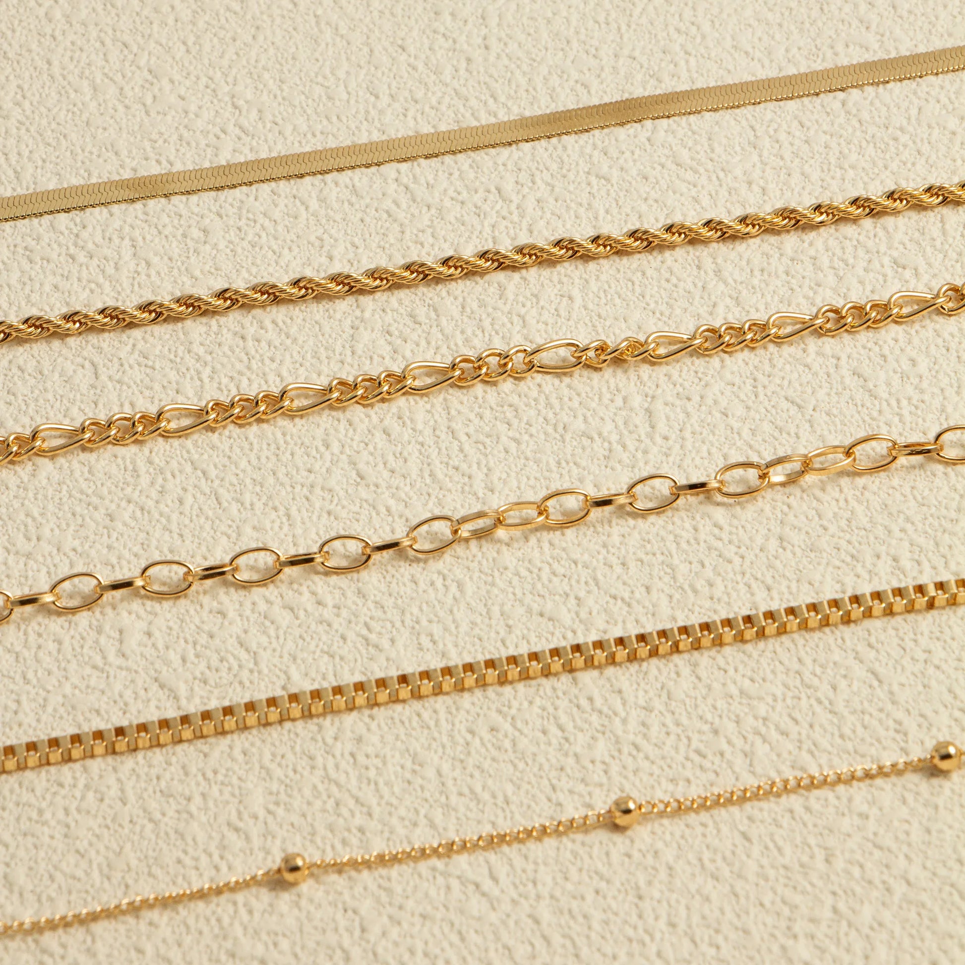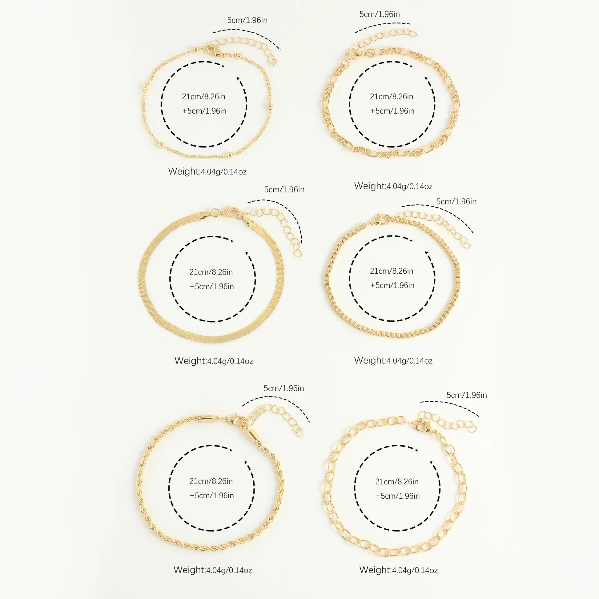 Leggero e luminoso, questo set di cavigliere boho stackable