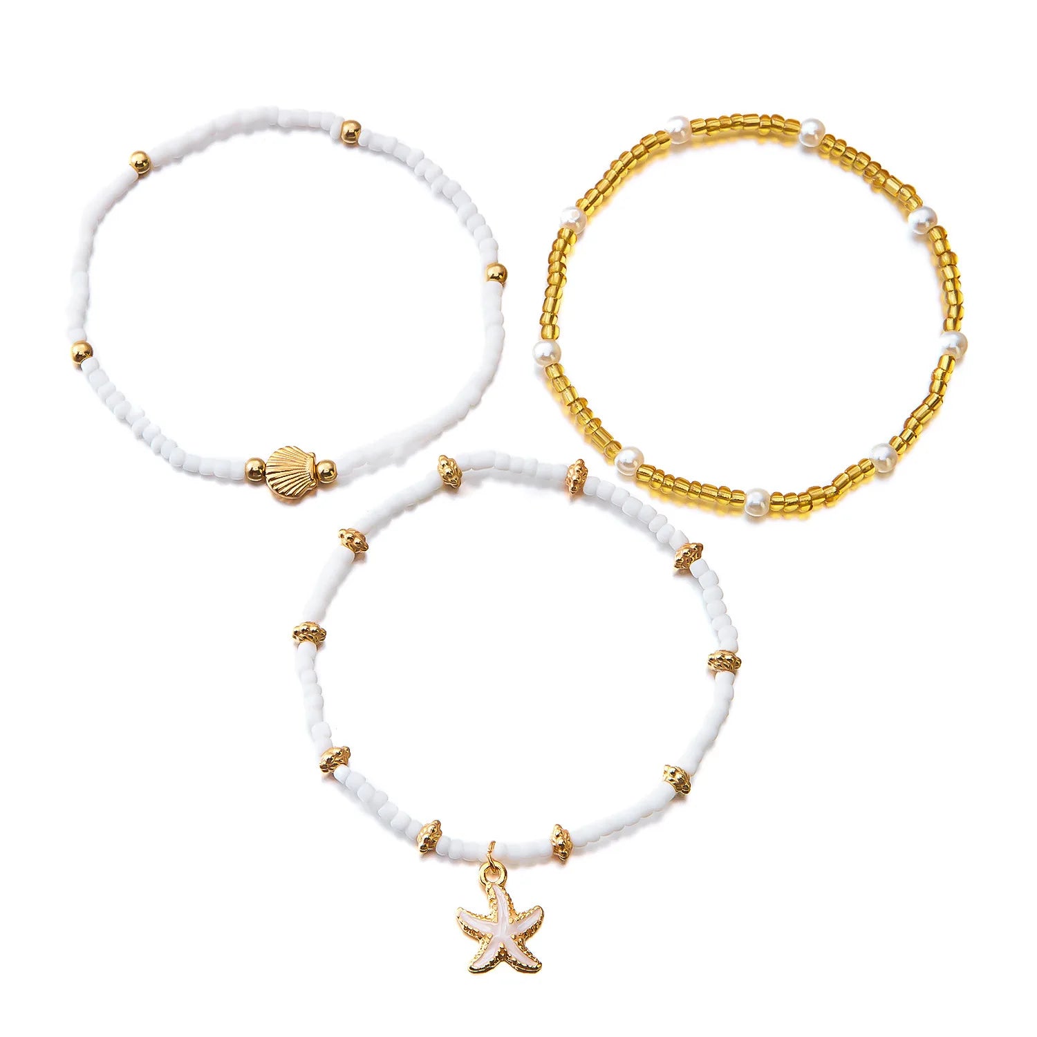 Ispirato al mare, questo set da 3 cavigliere boho seaside